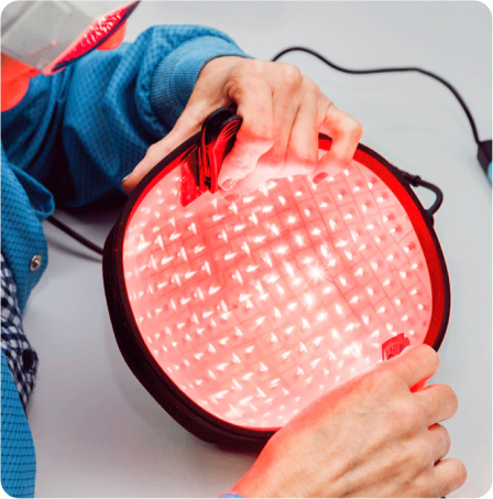 Capillus laser caps use clinically proven Low-Level Laser Therapy (LLLT) to revitalize thinning hair at the source. When applied to the scalp, this gentle, therapeutic red light stimulates cellular energy within your hair follicles, without heat, discomfort, or side effects.