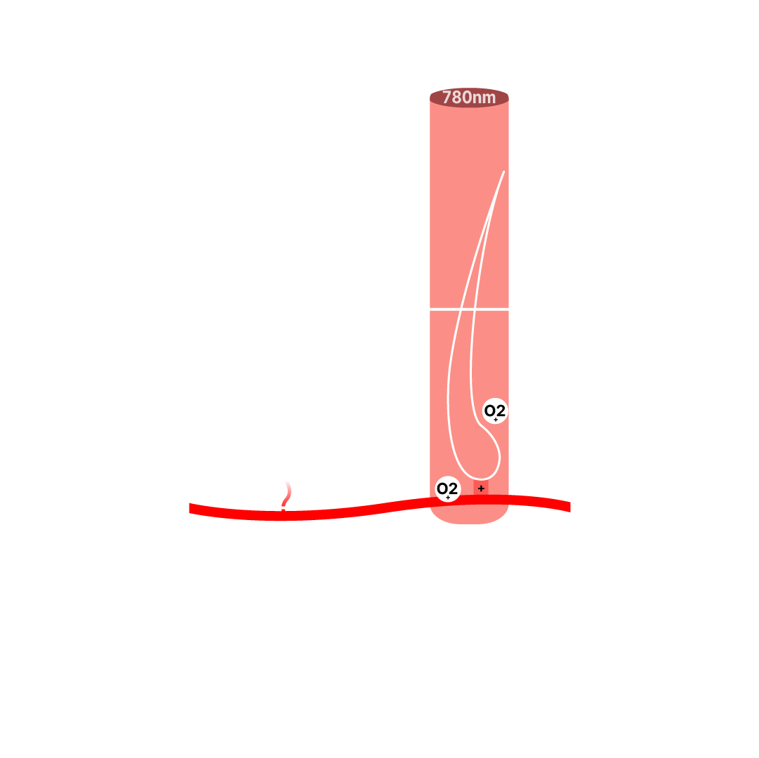 Red light reaches the follicle — but stops there. Everything deeper goes untreated.