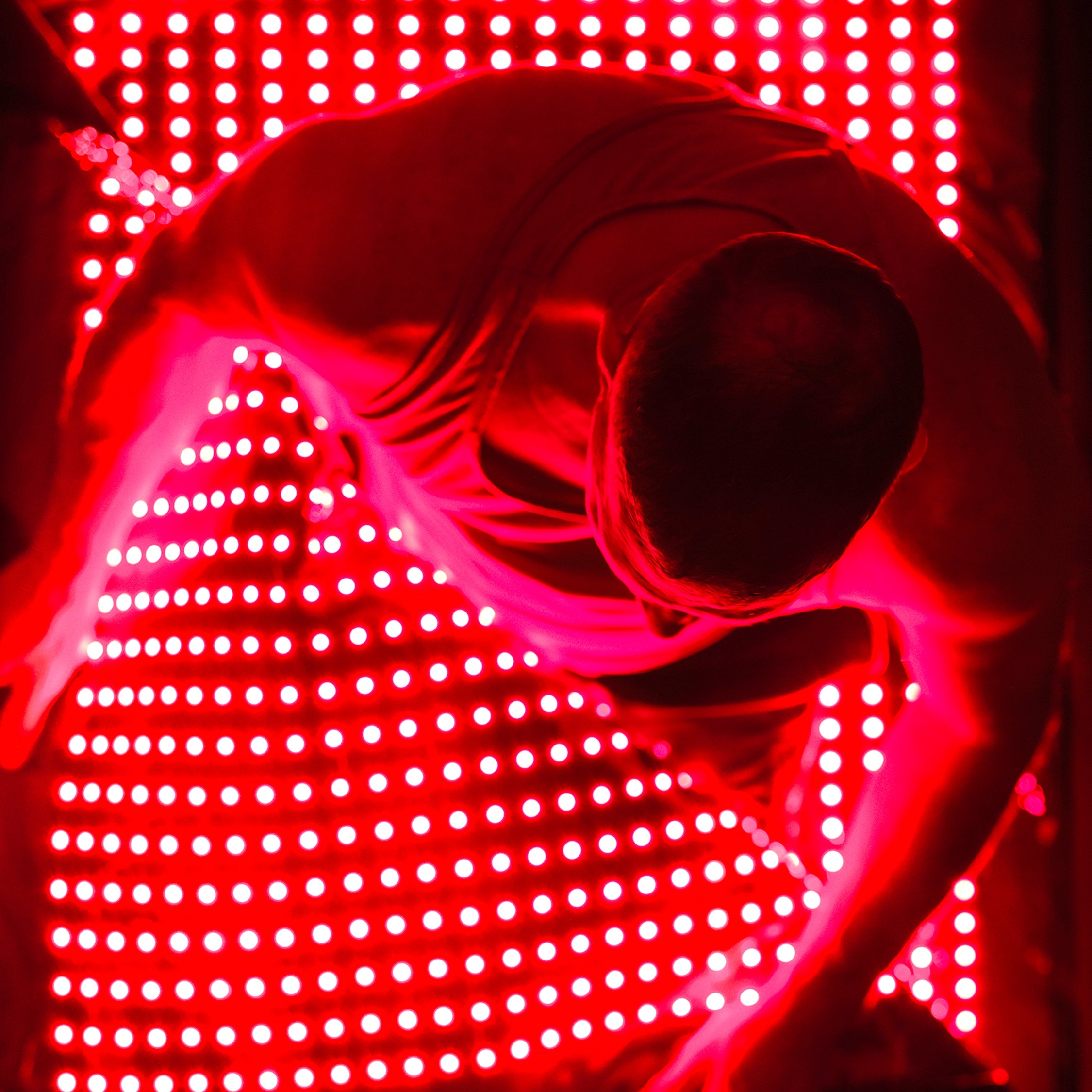 The Capillus Healing Pod features 2,800 high-quality LEDs arranged for double-sided therapy, providing consistent, full-body red light coverage in every session.